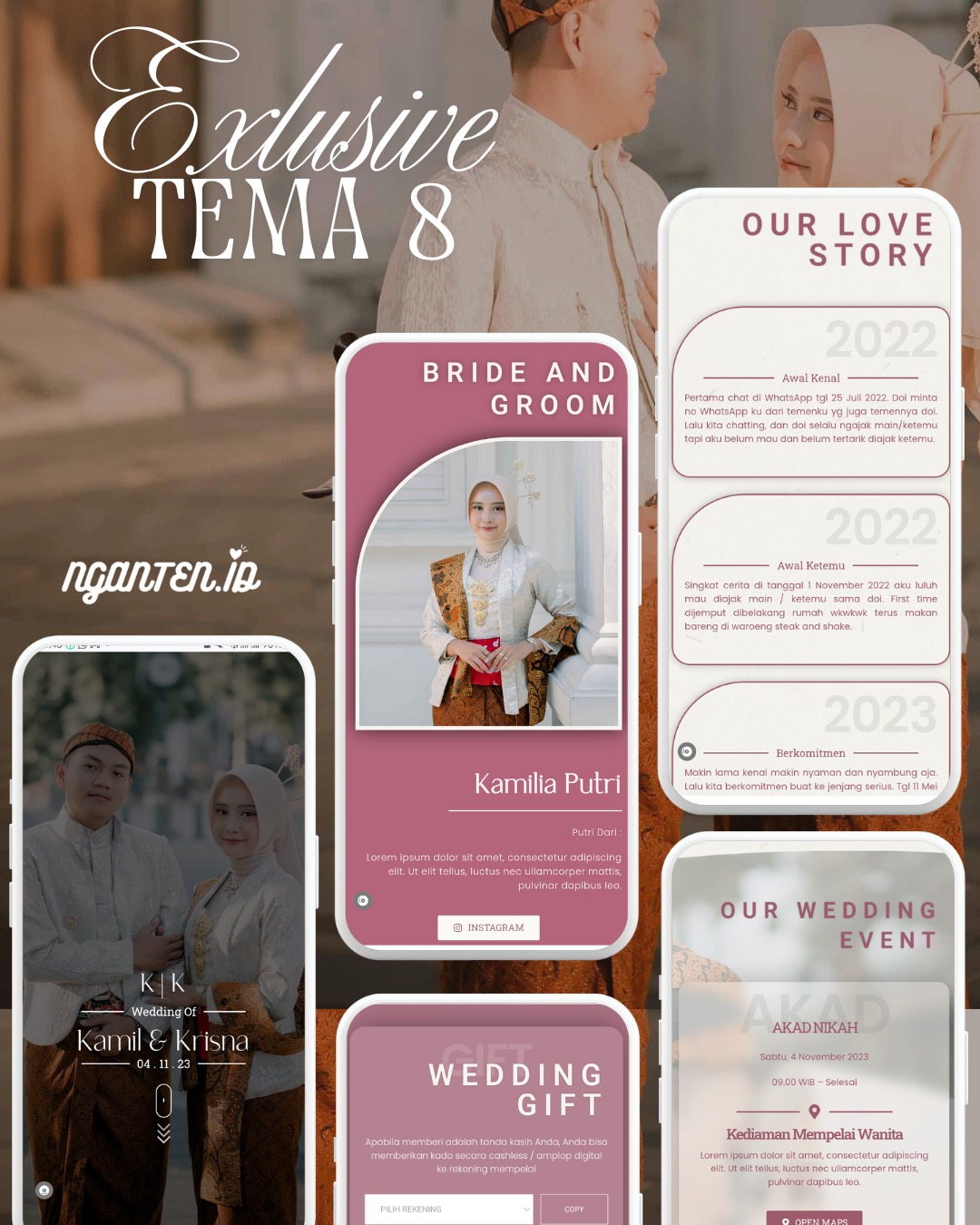 Untuk nama tamu nanti yang isi kakak sendiri ya, setelah undangan jadi akan diberitahu cara mengubah nama tamunya.